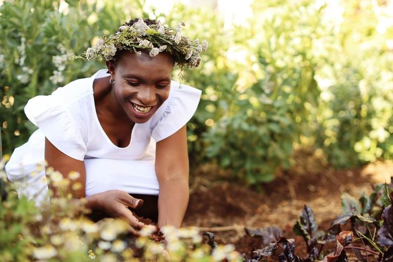 03 – Flower farmer Nziwe Dyirakumunda shows how the simple act of weeding or sitting among greenery helps calm the nervous system and restore balance.