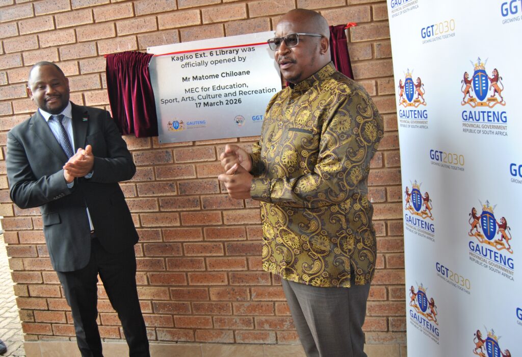 The Gauteng MEC for Education and Sports, Recreation, Arts and Culture (SRAC), Matome Chiloane, together with Mogale City Local Municipality Executive Mayor, Lucky Sele, officially unveiled the newly revamped Kagiso Library on 17th March 2026. MEC Chiloane handed over the state-of-the-art facility to the community of Kagiso in a fanfare activity much to the appreciation of the residents, who have been waiting for more than a decade to have access to the library.